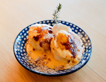 【ぶらり途中下車の旅】でも紹介されました、 【スチームスフレパンケーキ】は、たっぷりの蒸気で蒸し焼きにすることで、どこにもない新しいパンケーキが完成。プルシュワな新食感は幸せを感じます!