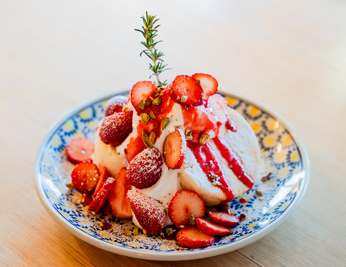 新しく、そして懐かしいをコンセプトに作られたこのスチームスフレパンケーキは、化学添加物を使わず低温でゆっくり焼き上げる、独自の調理法で仕上げました。さらにー晩熟成することでうまみを凝縮。たっぷりの卵、ふっくら・しっとりの優しい食感は、MIDTREEだけでお楽しみ頂ける新しいパンケーキです。